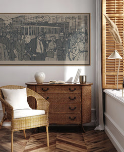 His work is divided in two techniques, drawn and graphic, both inspired by late last century social realism and somewhere between traditional and modern in form. He is generally fascinated by manual labor, craftsmanship and iconic compositions.